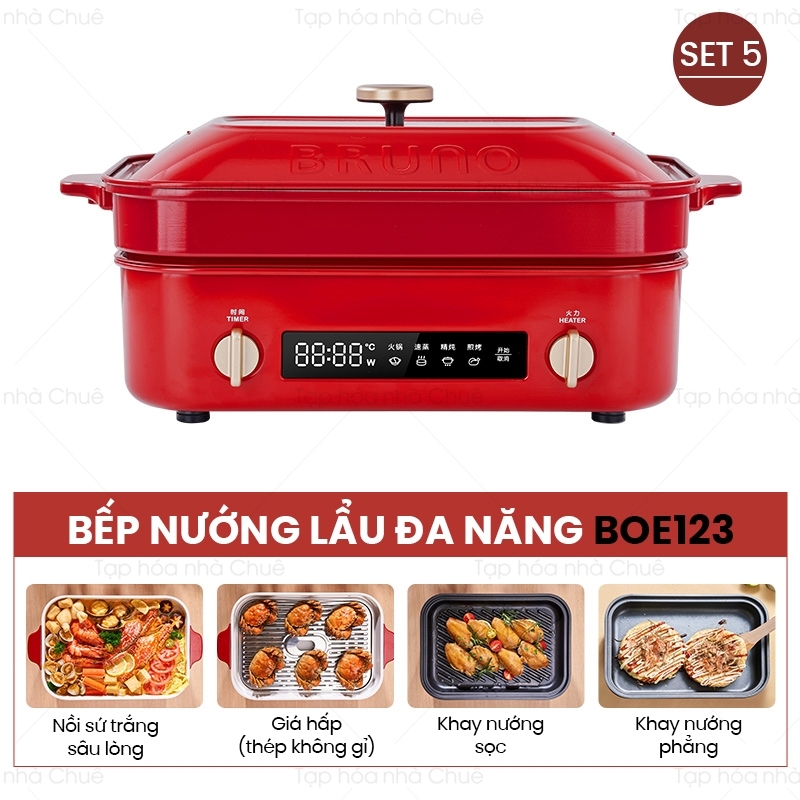 BẾP LẨU NƯỚNG ĐA NĂNG BRUNO DIGITAL 2.0 BOE123 [COMBO SET5 - ĐỎ]