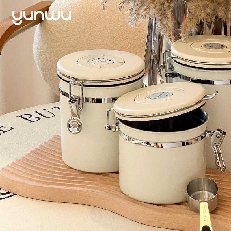 [Chính hãng] [Có sẵn] [Ảnh thật] HỘP KIM LOẠI KÍN KHÍ BẢO QUẢN CÀ PHÊ TRÀ CÓ LỊCH GHI NHỚ KÈM THÌA YUNWU