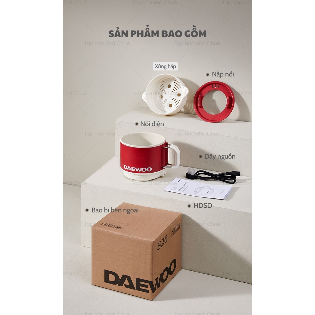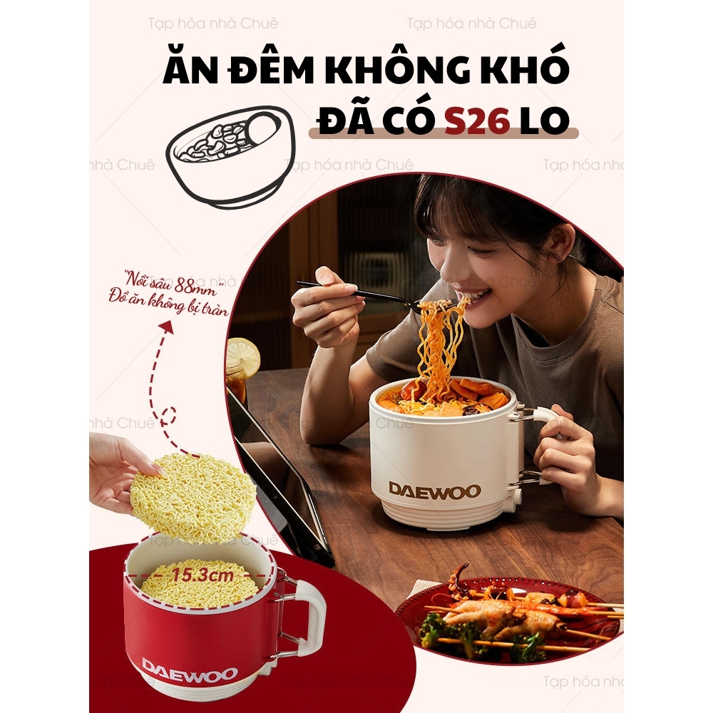 [Có bảo hành] [Có sẵn] [Chính hãng] NỒI ĐIỆN NẤU HẤP MINI CHỐNG DÍNH ĐA NĂNG NỒI DU LỊCH DAEWOO S26 ( TẶNG KÈM STICKER )