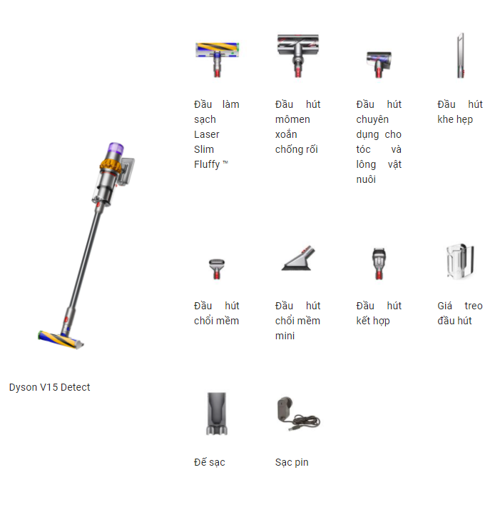 Công nghệ không dây của Dyson V15 Detect giúp bạn dọn dẹp nhà cửa dễ dàng và thuận tiện hơn rất nhiều so với các dòng máy hút bụi truyền thống. Ngoài sức hút mạnh mẽ, V15 còn có thể chuyển đổi sang dạng cầm tay phục vụ cho các nhu cầu làm sạch các bề mặt khác nhau như ô tô, cầu thang, đệm, ghế…