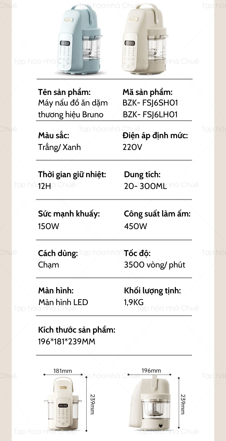 MÁY NẤU ĐỒ ĂN DẶM ĐA NĂNG CHO BÉ BRUNO